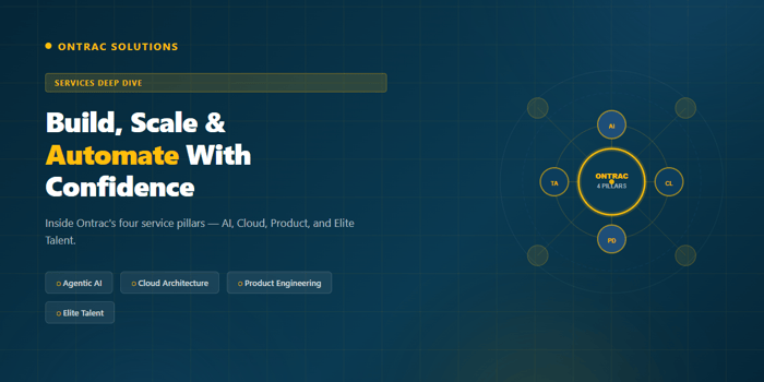 From your first AI agent to your full cloud migration — Ontrac delivers at every stage. Explore all four service pillars and find the right engagement model for your team.